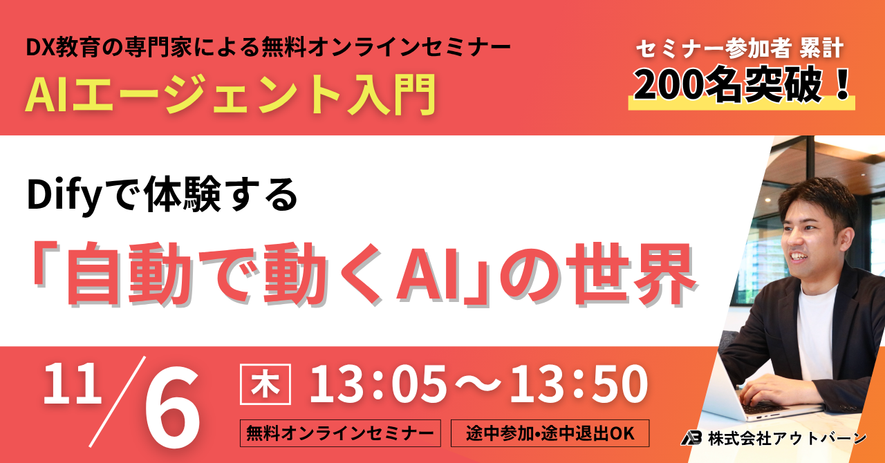 【11月6日(木)開催】AIエージェント入門:Difyで体験する「自動で動くAI」の世界