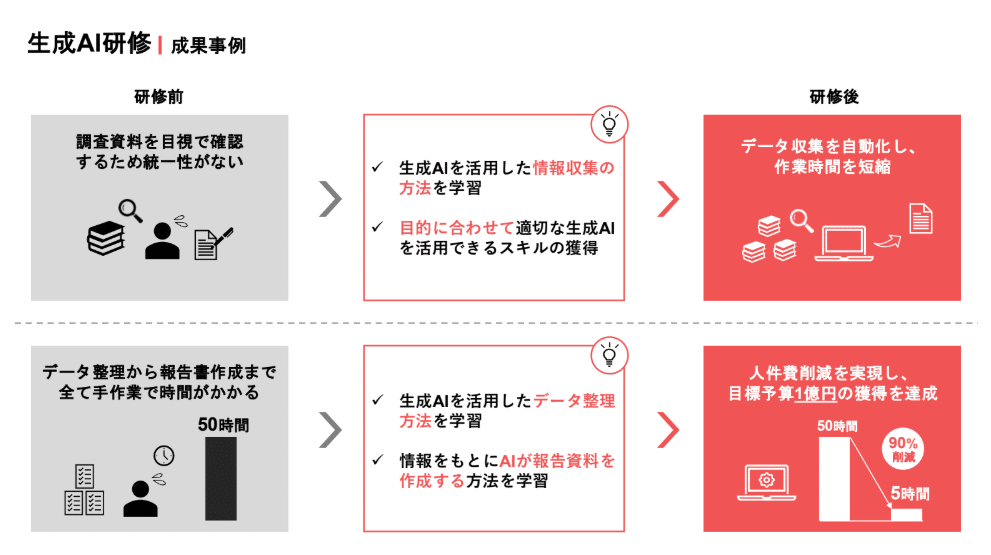 調査報告に50時間かかっていた作業が、生成AIの導入によりわずか5時間に短縮。